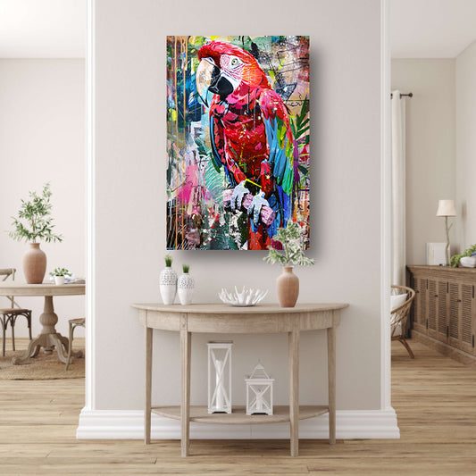 In deze collectie draait alles om kleur en karakter. Je vindt hier alles van realistische papegaaien portretten tot artistieke interpretaties in moderne, opvallende prints. Sommige werken vangen de structuur van veren met een verbluffende precisie, andere tonen papegaaien als grafische kunst; felgekleurde vormen, soms gecombineerd met abstracte accenten. Alle stukken zijn beschikbaar in verschillende materialen, van klassiek canvas tot glanzend plexiglas en strakke posters. Je hoeft geen purist te zijn om hiervan te genieten: de collectie spreekt kunstenaars én natuurliefhebbers aan. Fris, origineel en met aandacht voor detail; zonder overdreven poespas!