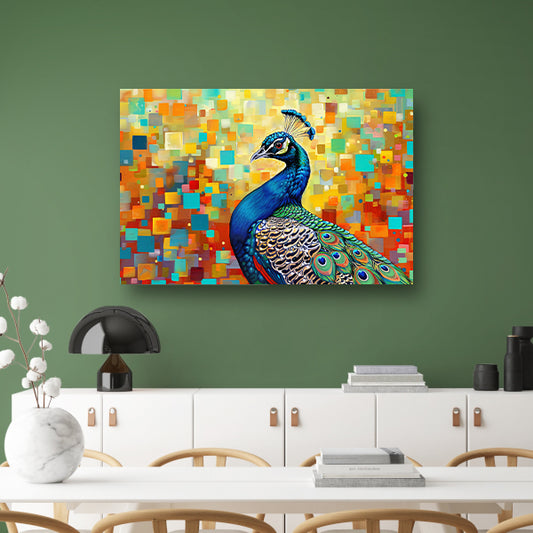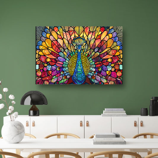 Pauw in kleurrijke glas-in-lood stijl canvas