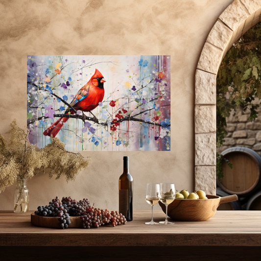 Kleurrijk abstract schilderij van een pauw tuinposter