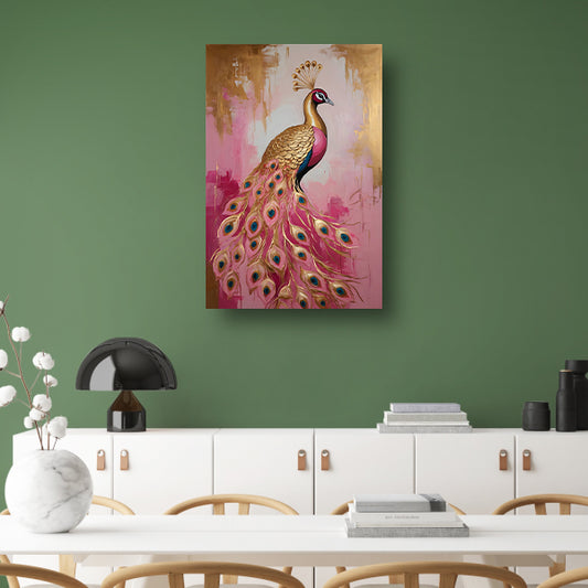 Elegante Gouden Pauw op Roze Achtergrond poster
