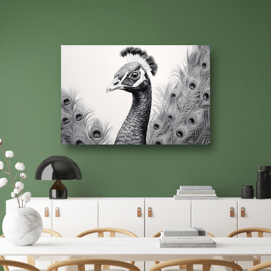 Elegante minimalistische pauw op een tak canvas met baklijst