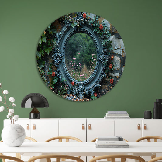 Minimalistisch spiegel met stenen muur aluminium muurcirkel