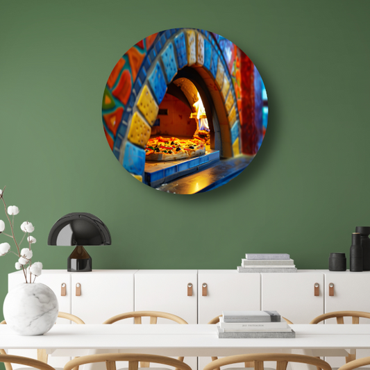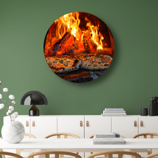 Minimalistische pizzakunst in oven aluminium muurcirkel