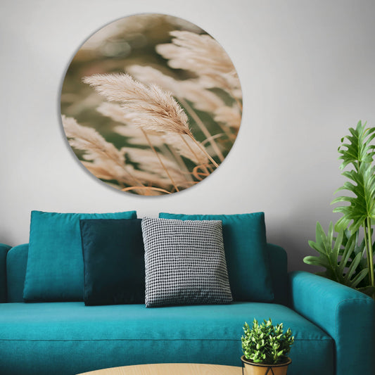 Close-up van Beige Grassen in Zonneschijn aluminium muurcirkel