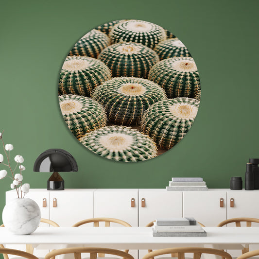 Veel ronde cactussen in close-up aluminium muurcirkel