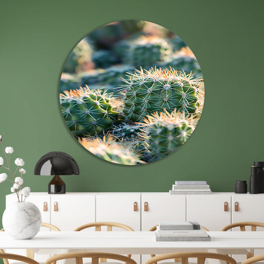 Hyperrealistische Print van Groene Cactussen aluminium muurcirkel