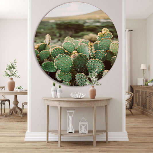 Levendige groene cactussen in weids landschap aluminium muurcirkel