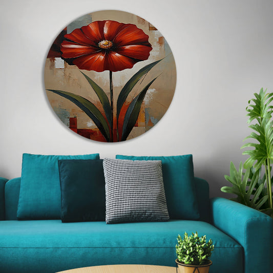 Groot Rood Bloem Canvas in Olieverf Stijl aluminium muurcirkel