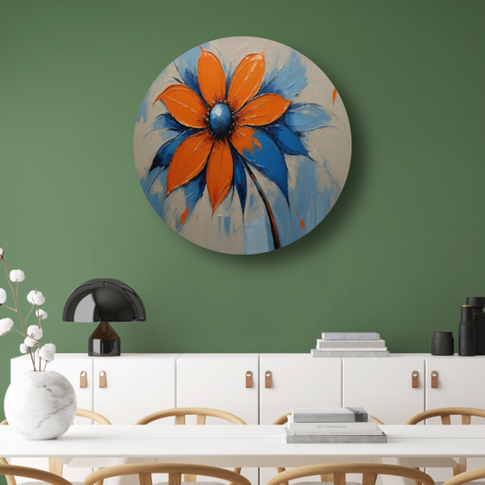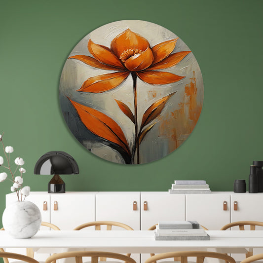 Oranje Bloem Impressie in Olieverf aluminium muurcirkel