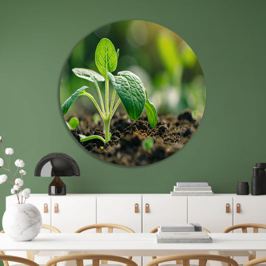 Jonge zaailing die door aarde breekt aluminium muurcirkel