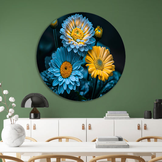 Levendige bloemen in kleurrijk contrast aluminium muurcirkel