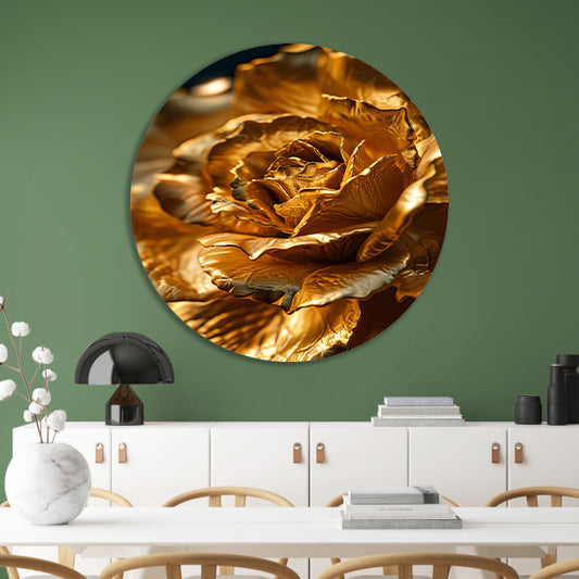 Gouden roos met delicaat licht en schaduwspel aluminium muurcirkel