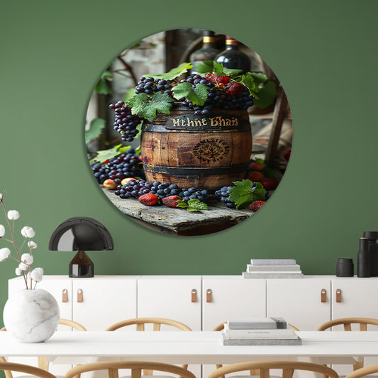 Stilleven met druiven, aardbeien en houten vat aluminium muurcirkel