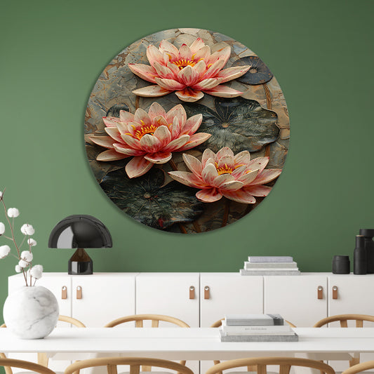 Reliëf van Roze Waterlelies aluminium muurcirkel