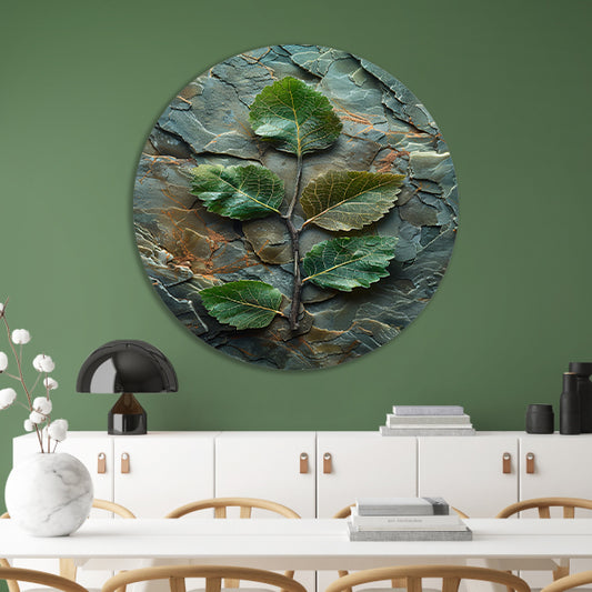 Tak met bladeren op stenen ondergrond aluminium muurcirkel