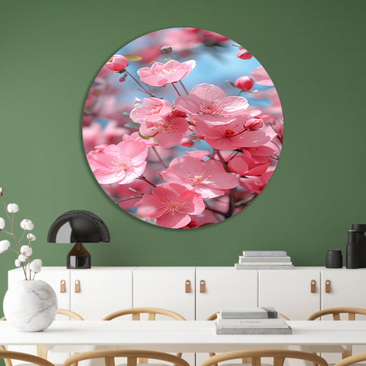 Zachtroze Bloesems in Lentezon aluminium muurcirkel