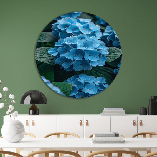 Blauwe bloemen in de tuin aluminium muurcirkel