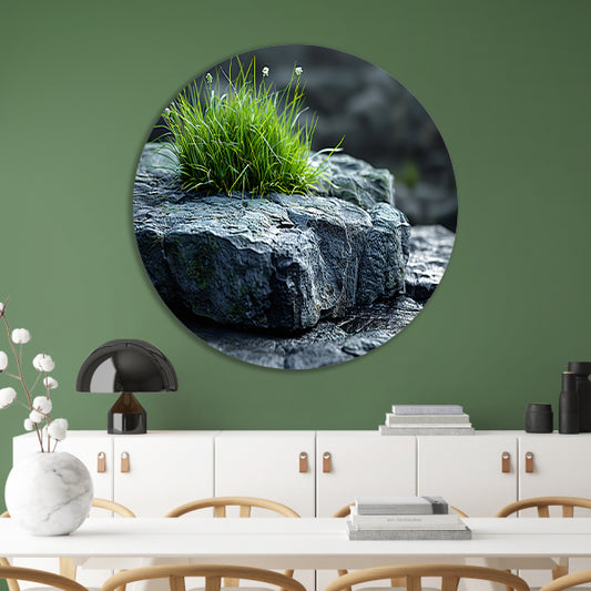 Minimalistisch Gras op Steen aluminium muurcirkel