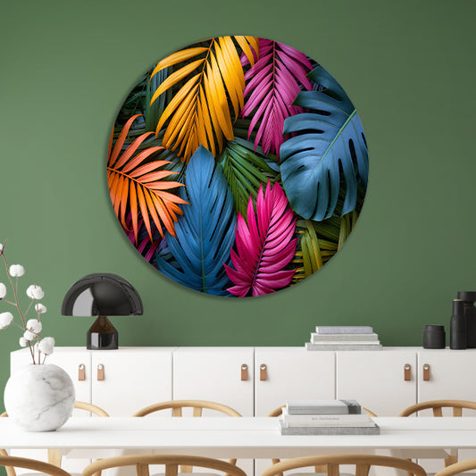 Groene junglebladeren aluminium muurcirkel