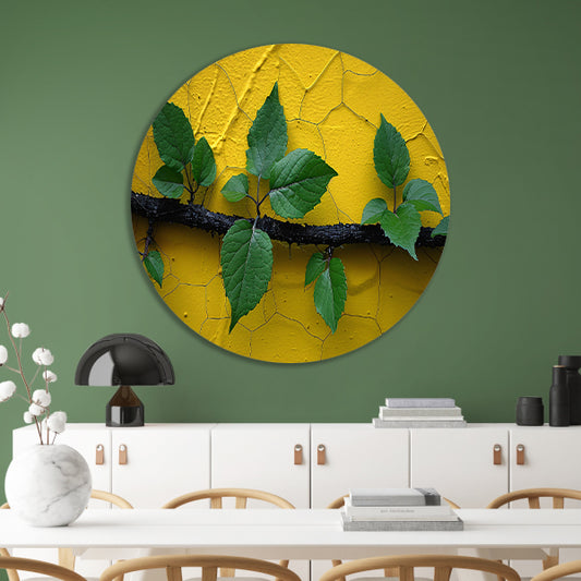 Minimalistisch tak op gele muur aluminium muurcirkel