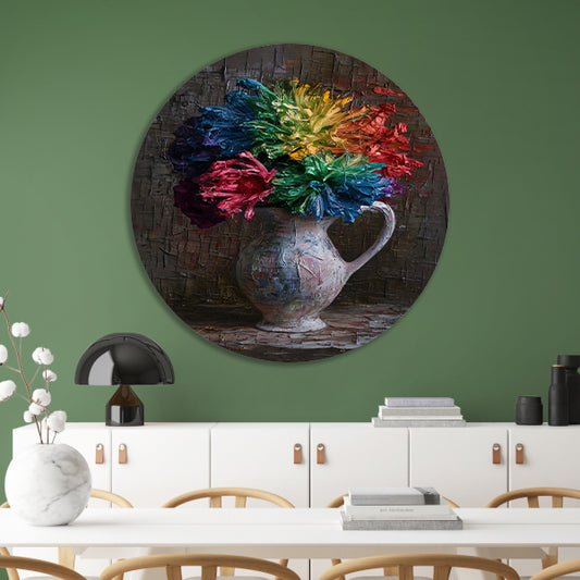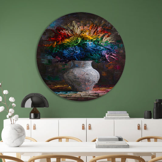 Kleurrijke Impressionistische Bloemen in Elegante Vaas forex muurcirkel