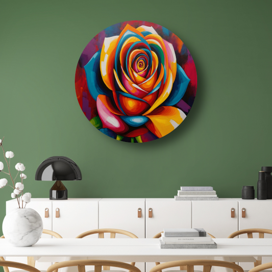 Kleurrijke Abstracte Roos in Levendige Tinten forex muurcirkel