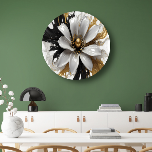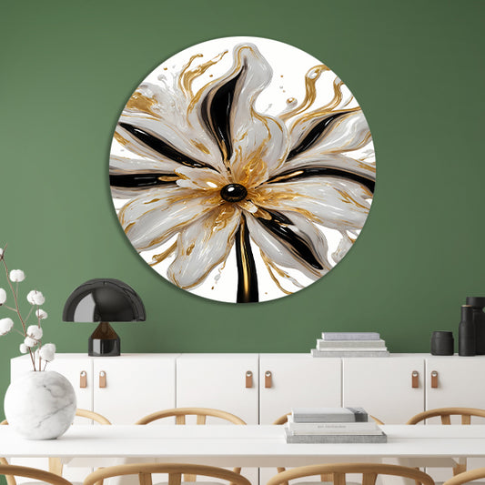 Gouden Spetters en Witte Roos Kunstwerk forex muurcirkel