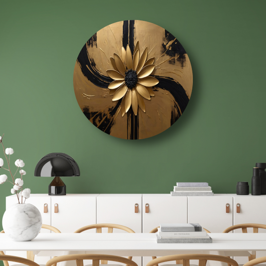 Gouden Bloem Abstract op Zwart forex muurcirkel