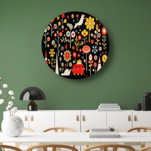 Abstracte bloemencompositie in primaire kleuren forex muurcirkel