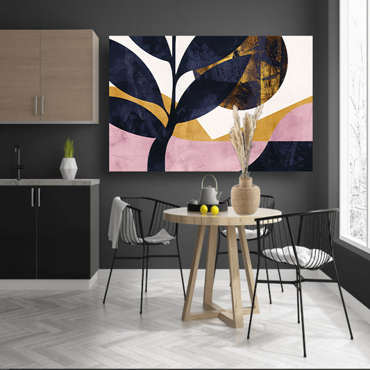 Abstracte minimalistische kunst met planten en bergen canvas met baklijst