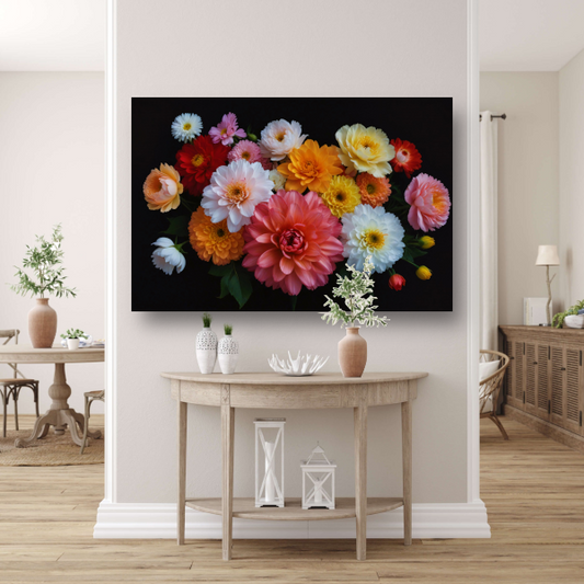 Prachtig Kleurrijk Bloemenarrangement op Zwart canvas met baklijst
