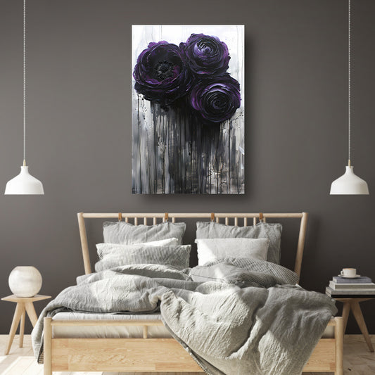 Grote Abstracte Bloemen in Zwart en Paars poster