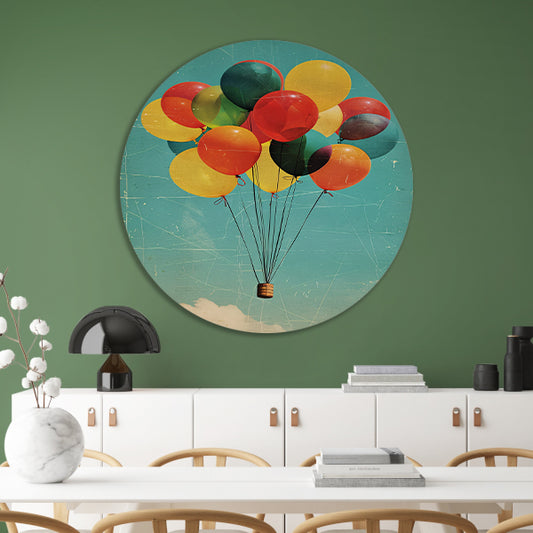 Kleurrijke ballonnen zweven door de lucht aluminium muurcirkel