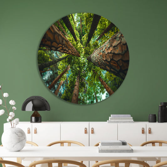 Hoog perspectief op bomen in weelderig bos forex muurcirkel