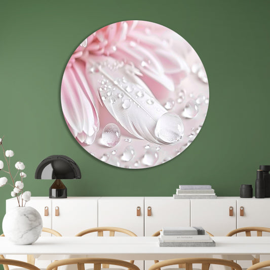 Veer en dauwdruppels met roze bloem forex muurcirkel