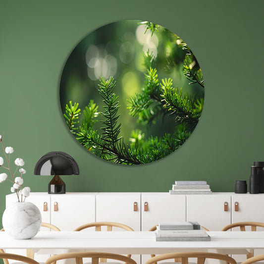 Groene naalden verlicht door zonnestralen forex muurcirkel