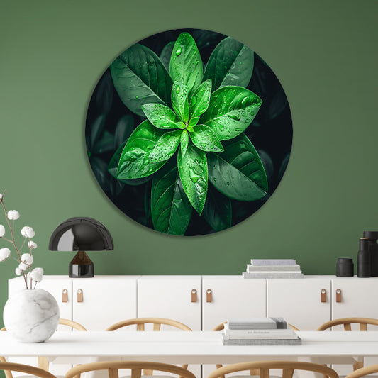 Levendige groene bladeren met dauwdruppels forex muurcirkel