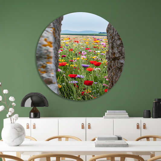 Kleurrijk Bloemenveld met Bomen forex muurcirkel