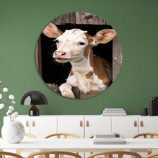 Nieuwsgierige koeien kijken door een wiel forex muurcirkel