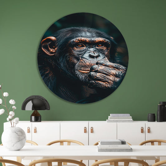 Gedetailleerd portret van een denkende chimpansee forex muurcirkel