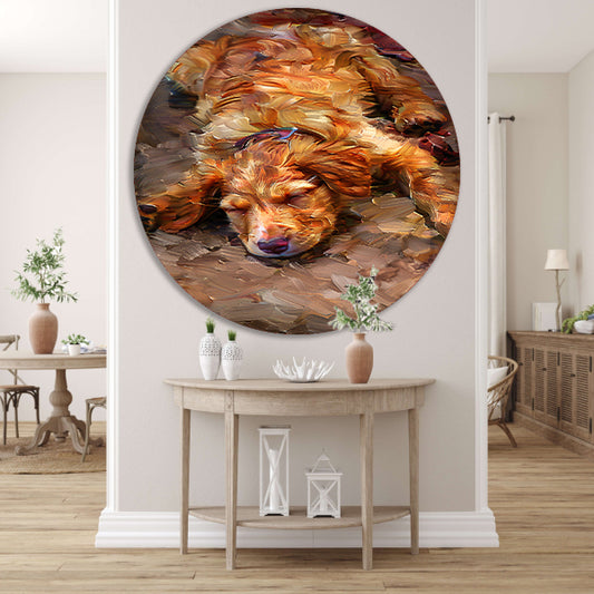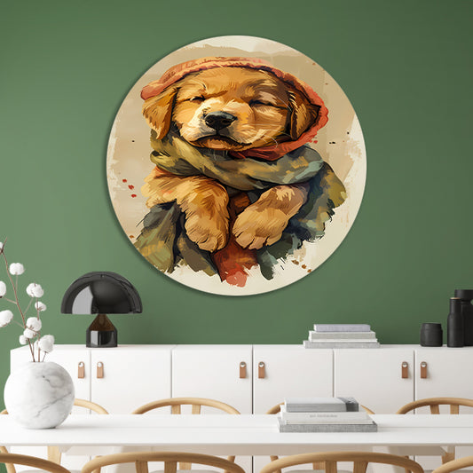 Schilderij van een slapende puppy met bril forex muurcirkel
