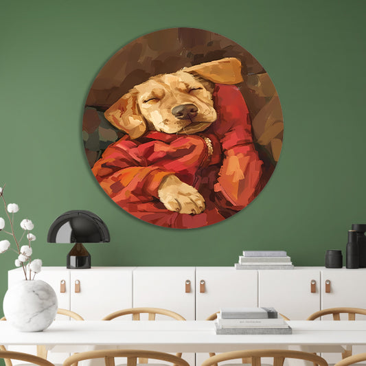Slapende Labrador in Rode Jas forex muurcirkel