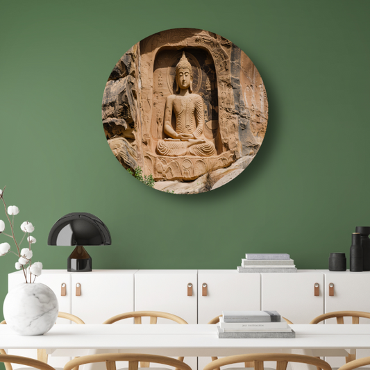 Meditatief Boeddha Sculptuur in Rotswand forex muurcirkel