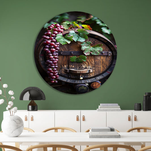 Tros Druiven en Houten Vat in Wijngaard forex muurcirkel