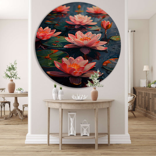 van Roze Waterlelies in een Vijver forex muurcirkel