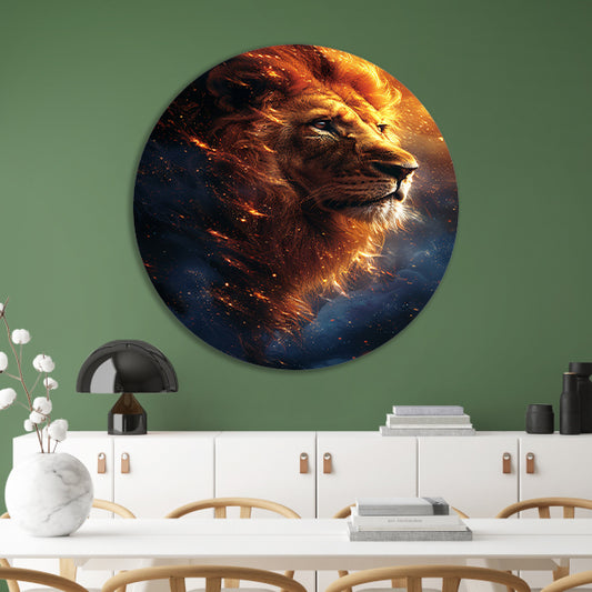 Portret van een majestueuze leeuw met vurige manen forex muurcirkel