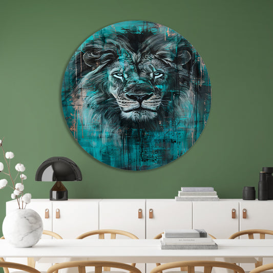 Realistisch schilderij van een majestueuze leeuw forex muurcirkel