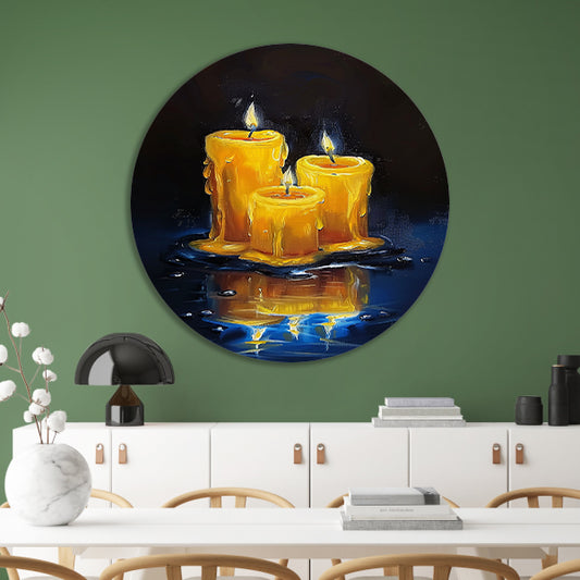 Aquarel schilderij van drie brandende kaarsen aluminium muurcirkel