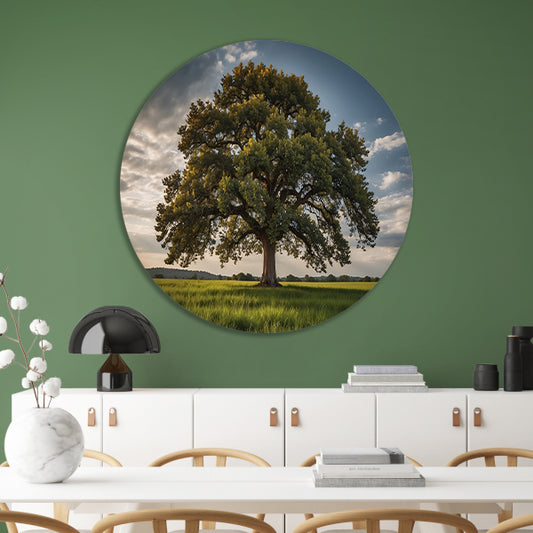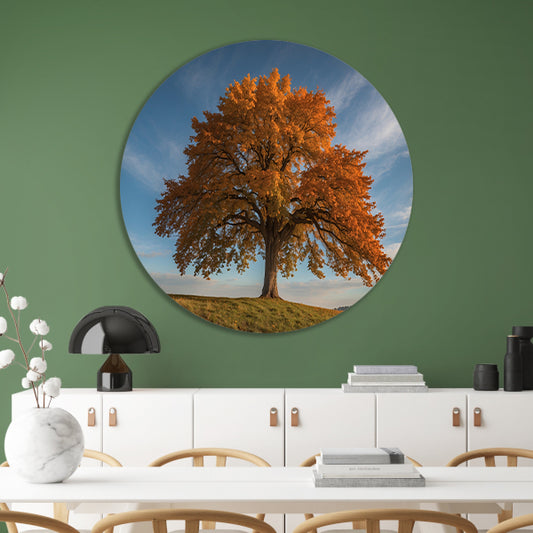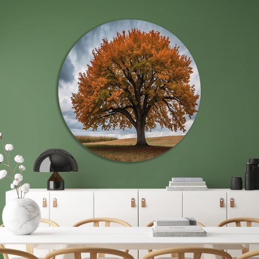 Majestueuze herfstboom in een weids landschap forex muurcirkel