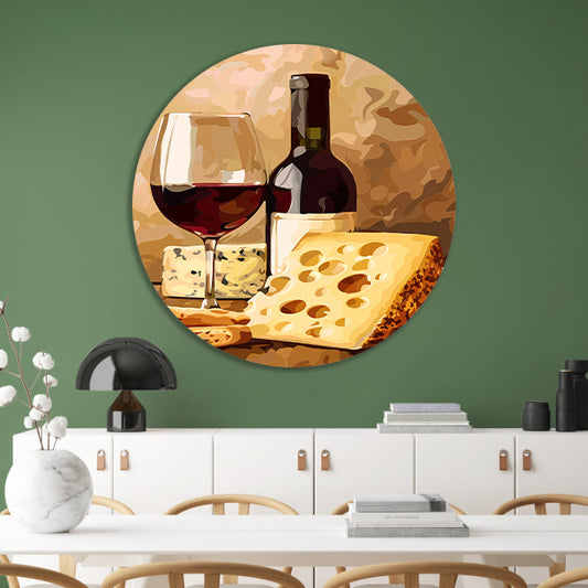 Schilderij van wijn en kaas stilleven forex muurcirkel